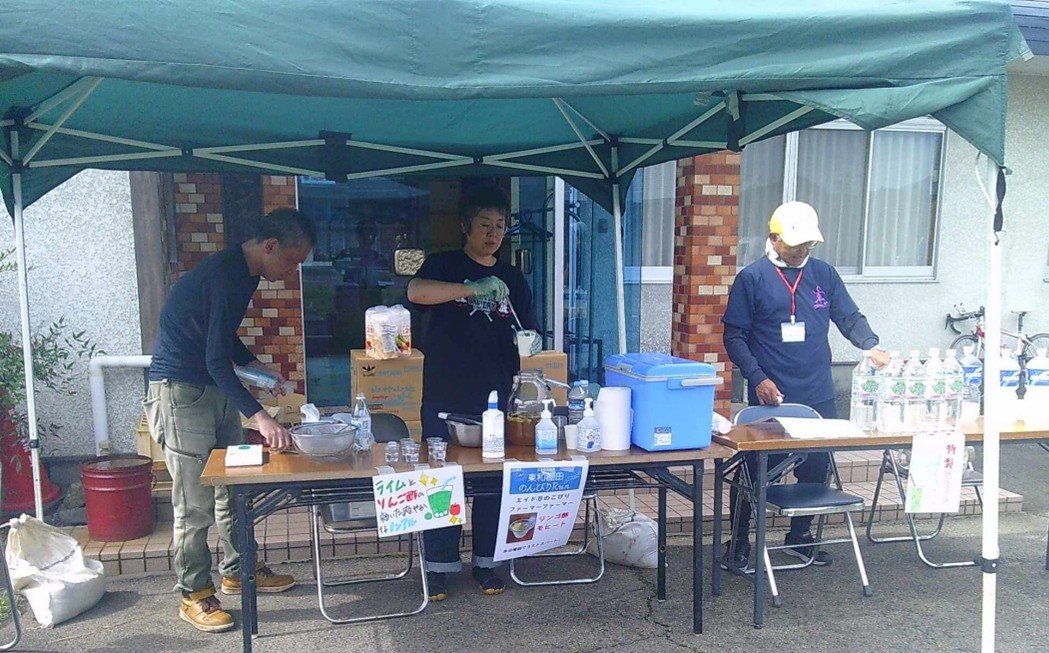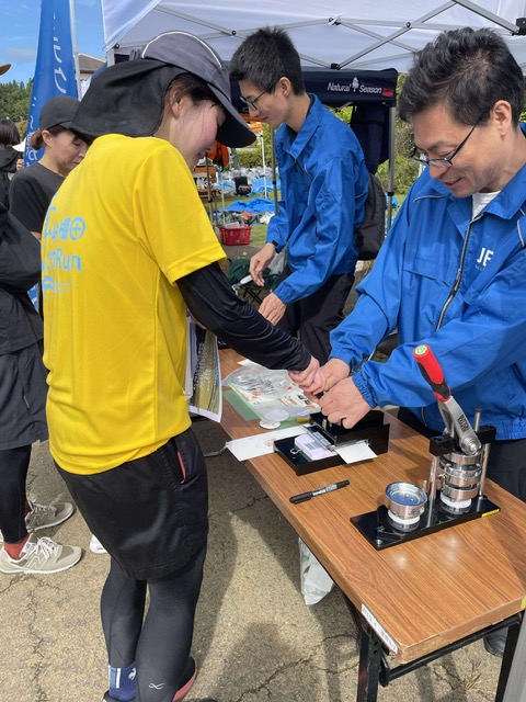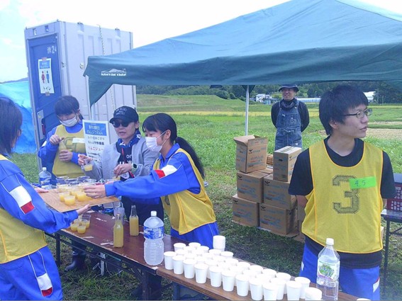 ここでは、第6エイドのなんぶ平野農園さんのりんごジュースも提供される。