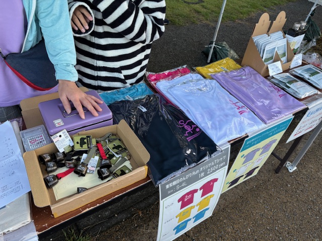 その横には、のんびりRunグッズの販売も。今年のTシャツは、紫・白・ネイビーにピンク文字と、スタイリッシュな色合い。