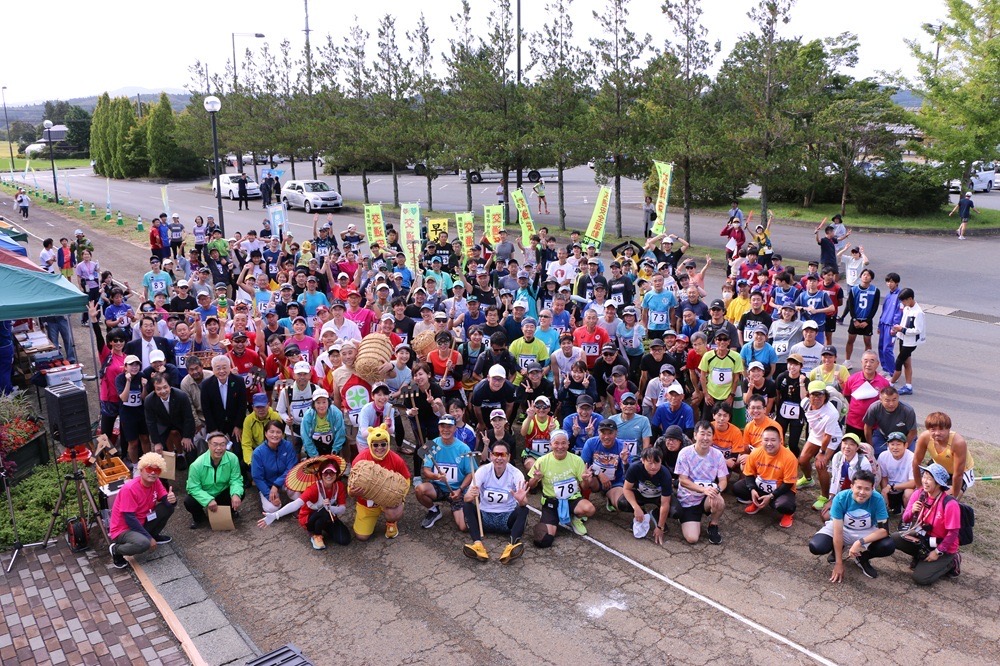去年はザーザー降りの大雨の中の開催となった棚田ラン。今年は爽やかな秋晴れに恵まれ、その雨は、みんなの笑顔という名の虹に変わった。