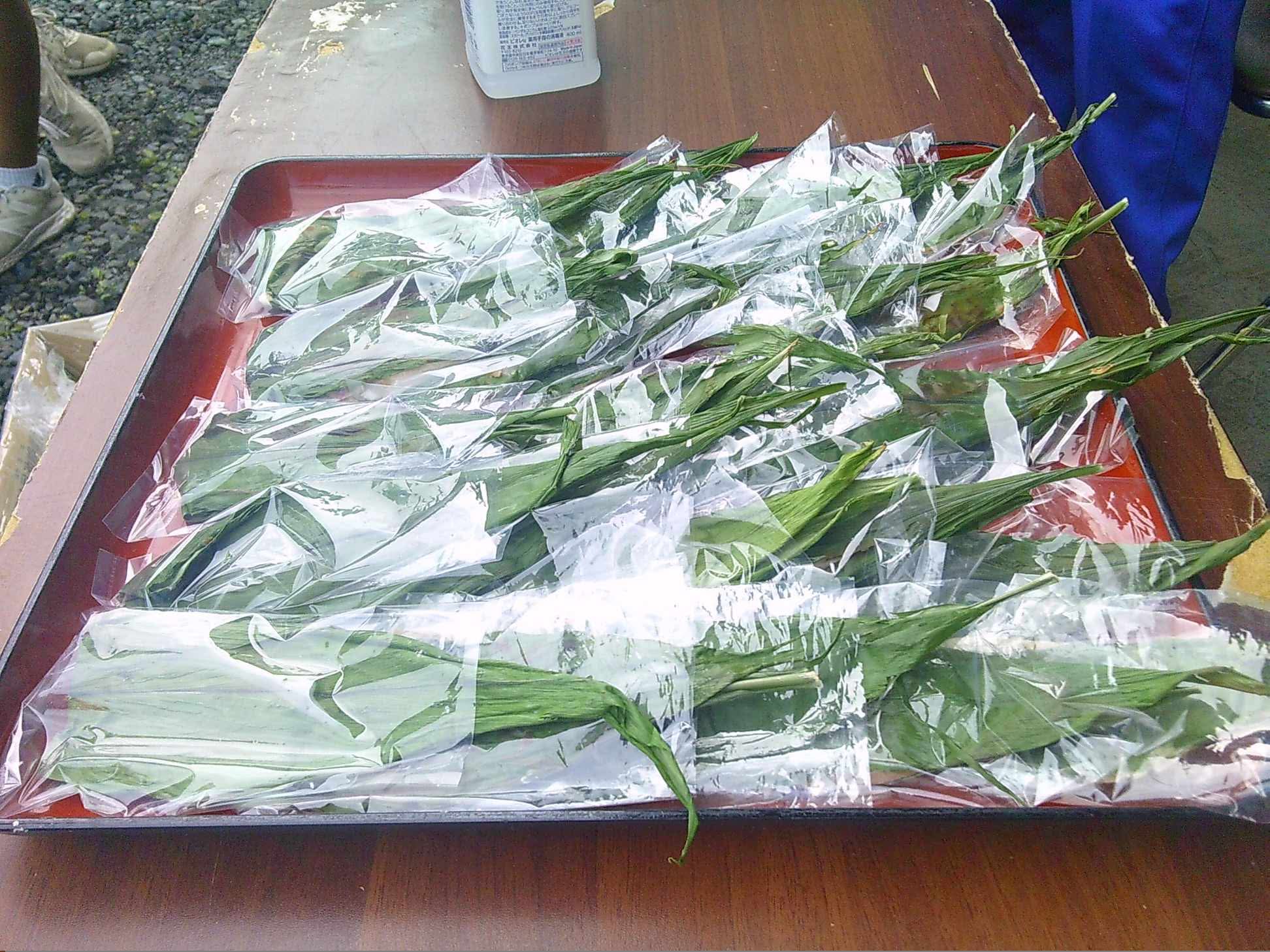 これは中々東京では聞き馴染みがないが、もち米粉、小麦粉や砂糖などを練った生地をミョウガの葉で包んだ東北の郷土料理だ。