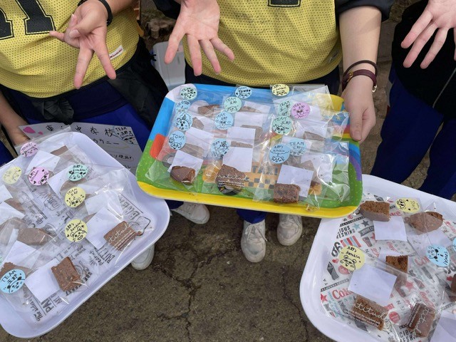 それだけではなく、ランナーの皆さんに味噌ブラウニーをおすそ分け。「棚田ランを盛り上げるために何かがしたい」との中学生の発案で、地元の皆さんのアドバイスのもと試行錯誤でレシピを作り上げ、前日から仕込んで当日ランナーの皆さんに配れるようにしたという。