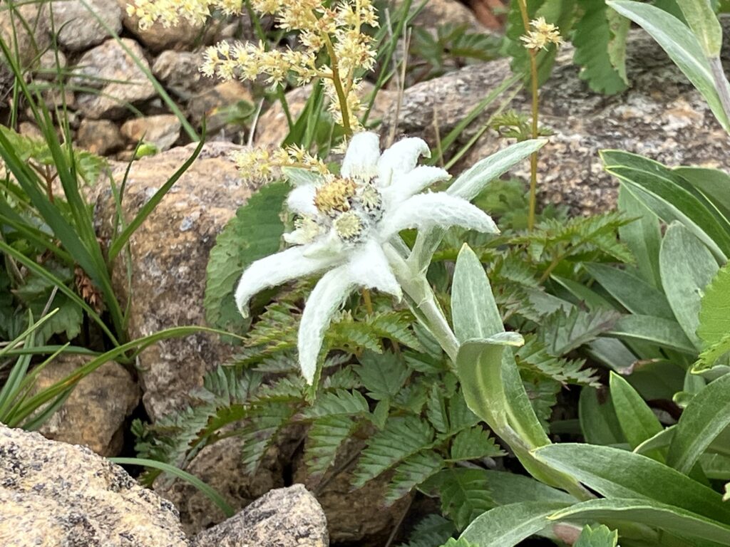 みなさんは、早池峰山の固有種「ハヤチネウスユキソウ」をご存知でしょうか。キク科の多年草で、ヨーロッパのエーデルワイスによく似た花です。近くでよく見ると白い葉の表面はフワフワした起毛のようになって、朝露がついている様は、まるで宝石のように美しいです。しかし近年様々な理由からその数は減っていて、絶滅の危険性が高い植物でもあるとのことです。